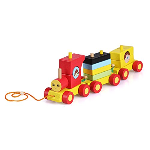 ☸ EDUCATIONAL STACKING TOYS - The wooden train set for toddlers make a fun staging game for toddler. Comes in bright colours to encourage colour and shape recognition
