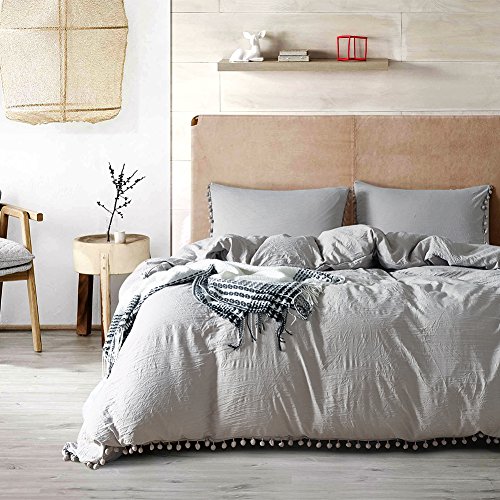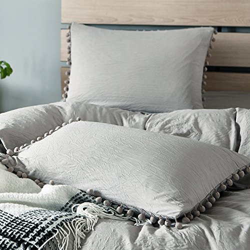 Specification: Type :Duvet Cover Set Number of Pieces : 3 Pieces bedding set Set Includes : (1)One Duvet Cover and(2) Pillow Cases. Fabric: 100% Microfiber Pattern: Solid Colro Ball Fringe Bedding Suitable Season: All the Seasons Filling: No Wash Method: Machine Washable Hand Wash