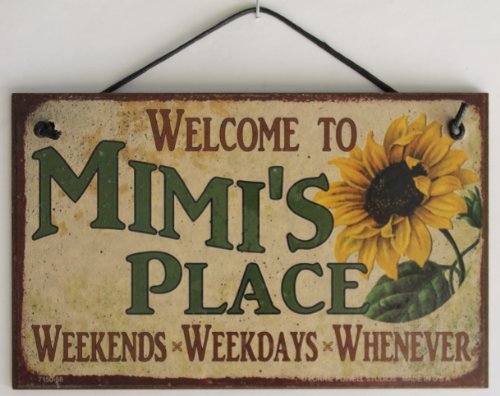 5x8 Vintage Style Sign with Sunflower Saying, "Welcome to MIMI'S PLACE Weekends, Weekdays, Whenever "