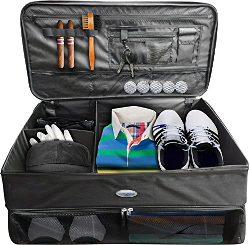 The top lid organizer has large mesh sections for gloves, tees, snacks and sunscreen