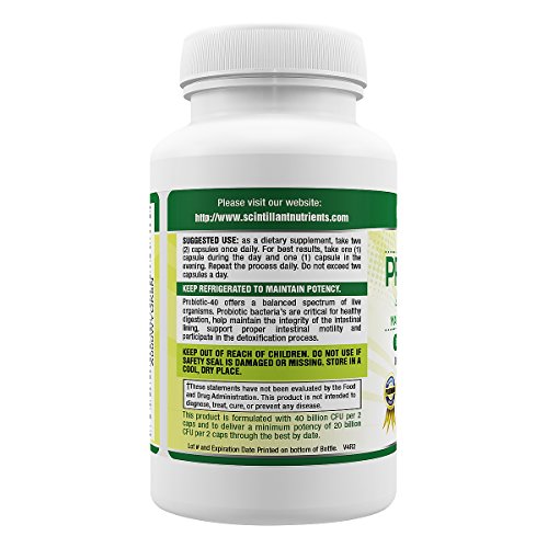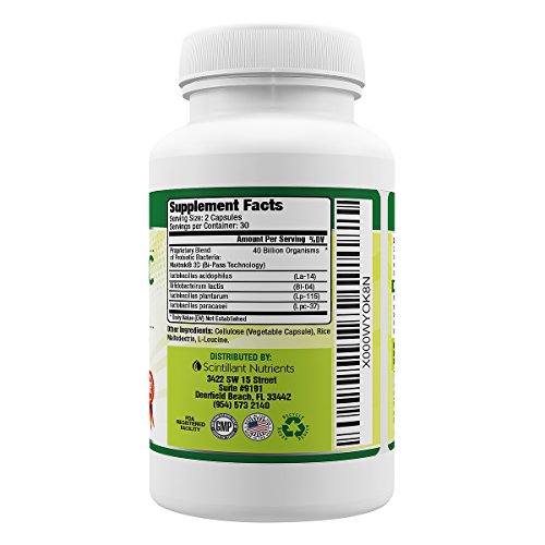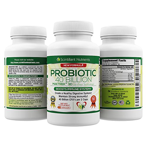 Probiotic 40 Billion with Maktrek 3D Technology by Scintillant Nutrients 2x Strength Reduce Gas Bloating and Aid Weight Loss 60 Shelf Stable Capsules