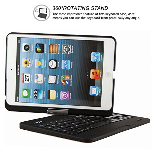 BATTOP iPad Mini Keyboard - Swivel 360 Degree Rotatable Bluetooth Keyboard Case - iPad Mini Bluetooth Keyboard - Compatible ipad Mini 3 / iPad Mini 2 / iPad Mini -black