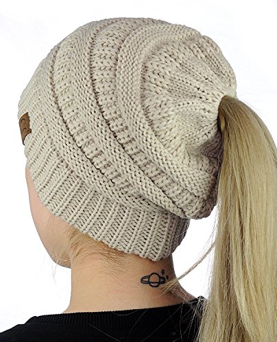 Binding : Apparel Product Description BeanieTail Soft Stretch Cable Ponytail Messy Bun Beanie Solid Warm Knit Hat: Perfect for pulling your messy bun or high ponytail throngh on chilly days,whatever your hair type,this winter hats will make you look great The knit beanie is soft and comfortable,offers you long-lasting warmth,made by 100% fibres fabric Trendy knit hat is stylish and nice,time saving and suiable for leisure,snow sports,caping,outdoor activities 0