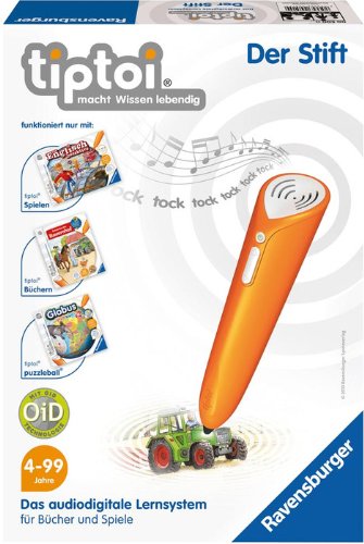 Ravensburger Tiptoi 005000 Der StiftTiptoi ist der Schlüssel zum spannenden Wissen. Der tiptoi Stift von Ravensburger funktioniert mit allen tiptoi-Produkten. Die Software des jeweiligen Produktes lädt der Kunde sicher, einfach und kostenlos über das Internet auf den Stift. Der Stift tiptoi spricht! Geräusch, Töne und Stimmen, Geschichten und Spiele werden akustisch lebendig! Er ist ganz einfach zu bedienen und tiptoi sieht! Mit neuartiger OID-Technologie: dabei liest ein optischer Sensor versteckte Codes und wandelt diese in Geräusche und Sprache um. Batterien (2 x AAA) sind NICHT enthalten…!
