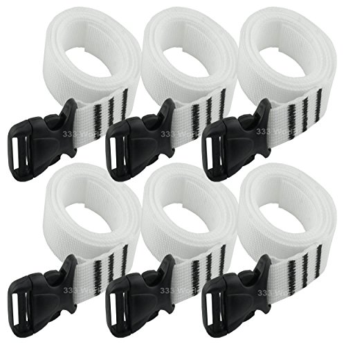 333 World - Strap with Plastic Quick Release Buckle for Lashing Strap, Backpack, Camping, Sleeping Bag, Air Mattress, Luggage Straps, Automotive. (White 1" x 60", 6 pieces)