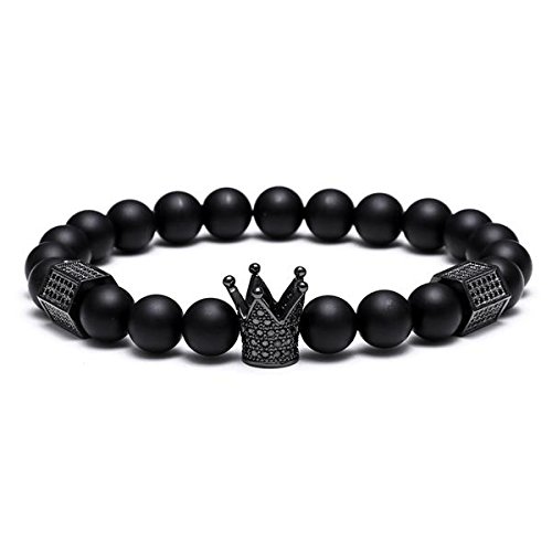 Royal Natural Matte Agate stone Beaded Handmade Healing Energy Wrist Bracelet for Men and Women (Black Large (8.5"))