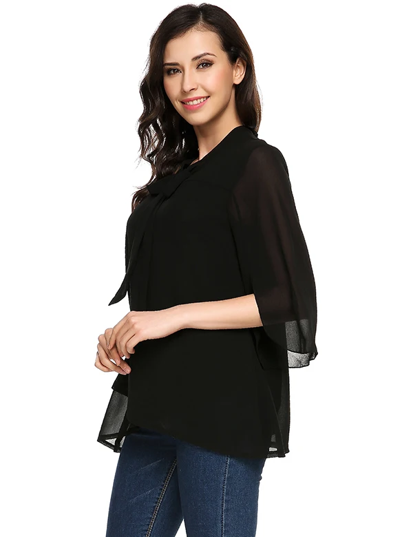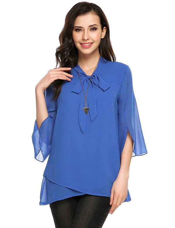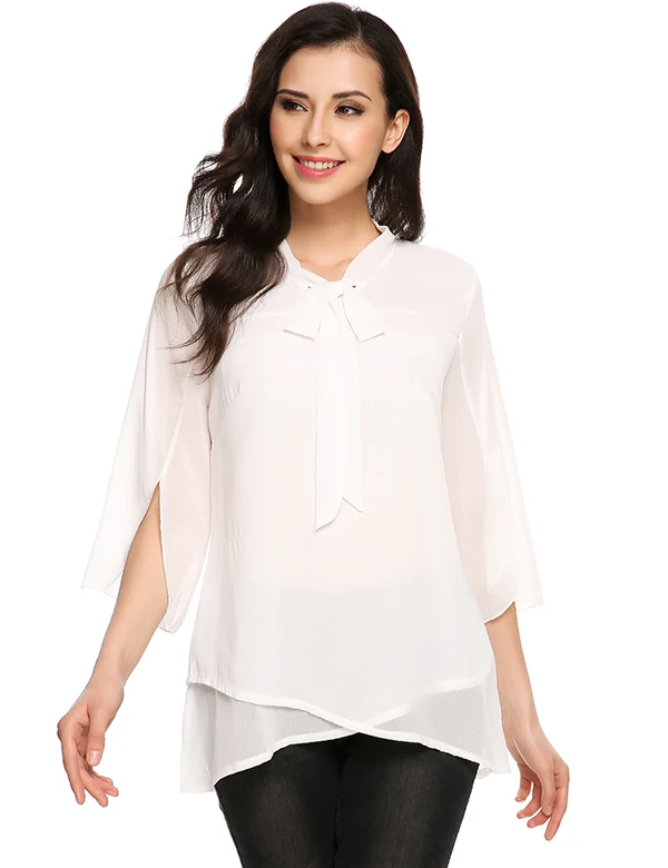 Item Style:Meaneor Cross Asymmetrical Hem Double Layers Lace-up Chiffon Top