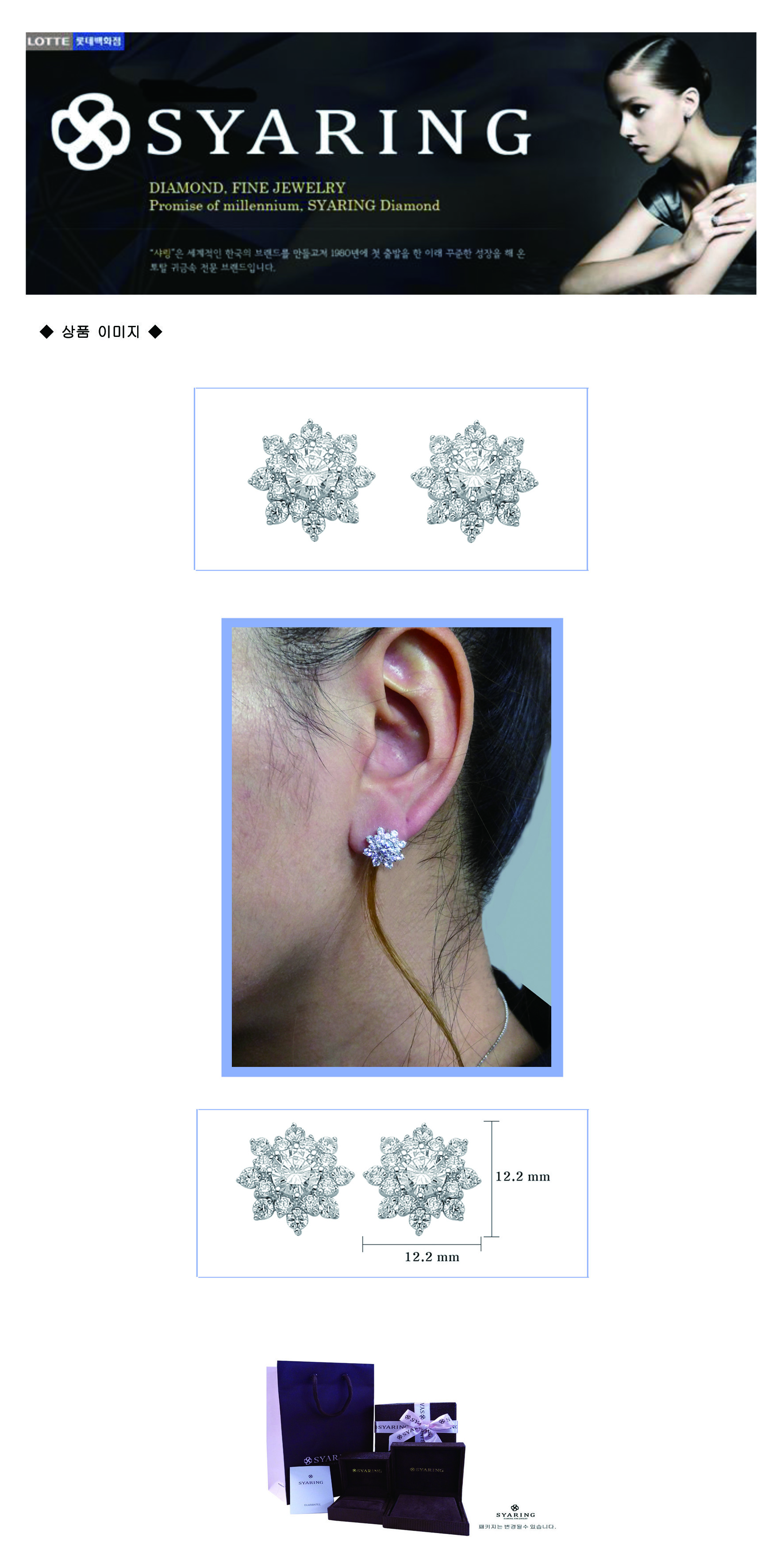 | 참 고 사 항 | * 중량표기는 평균중량이므로 약간의 오차가 있을 수 있습니다. * 보증서 기본 제공하나, 다이아몬드감정서는 2부 이상에만 발행됩니다. * 샤링의 모든 제품은 고객 한분, 한분을 위한 주문제작 상품이므로 주문취소 할 경우에는 주문 당일 24시간 이내에만 가능합니다. * 주문제작 상품은 구매 후 단순 변심인 경우, 교환 및 반품이 불가하오니, 주문전에 신중한 구매결정을 부탁 드립니다. * 주문 이후 취소 및 반품시 주문제작 위약금 10%(소비자가기준)를 지불하신 후 취소 가능합니다.