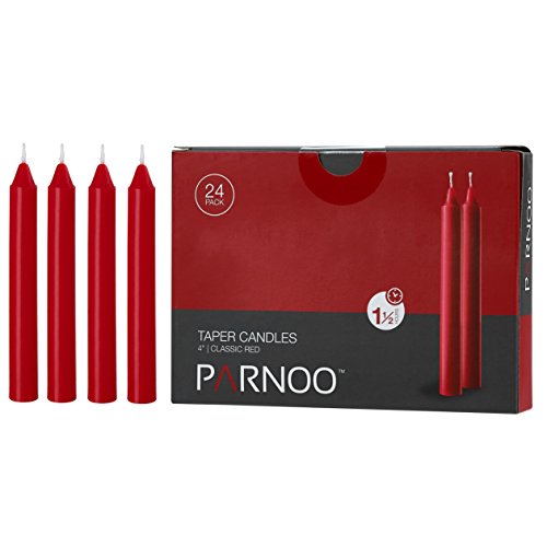PARNOO 24 Red Taper Candles 4 Inch X 1/2 Inch Thick . Burn 1.1/2 Hour (Color Is Core and Overdip)