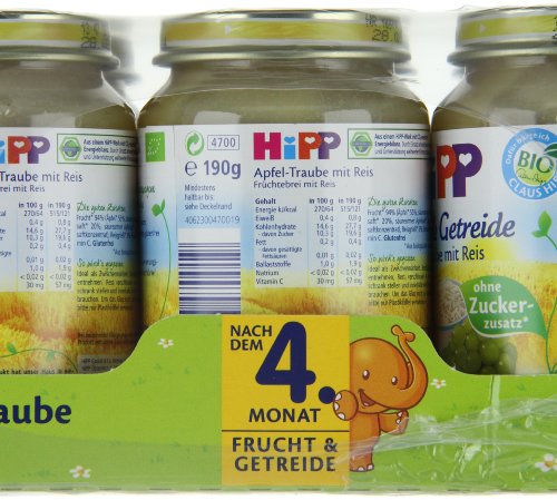 -. Title : Hipp Apfel-Traube mit Reis, 6-er Pack (6 x 190 g) - Bio