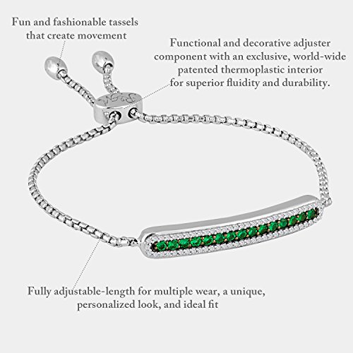 -. Binding : Jewelry -. Brand : Rhythm & Muse -. Color : green -. Department : womens -. Feature : This fully adjustable bracelet will fit almost every size hand. / Fun and fashionable tassels / Includes a special gift box and gift bag / Emerald is the world's most popular green gem / Sapphire is the 2nd hardest stone in the world -. Label : Sun Source Jewelry -. Manufacturer : Sun Source Jewelry -. Model : ZB5458SB40309 -. MPN : ZB5458SB40309 -. PartNumber : ZB5458SB40309 -. ProductGroup : Jewelry -. ProductTypeName : FASHIONNECKLACEBRACELETANKLET -. Publisher : Sun Source Jewelry -. Studio : Sun Source Jewelry -. Title : Rhythm & Muse Created Emerald & Created White Sapphire Halo Bar Adjustable Bracelet