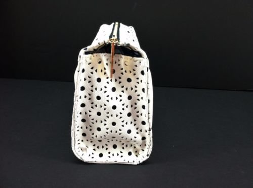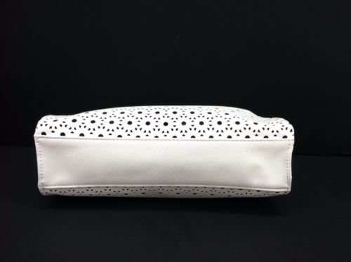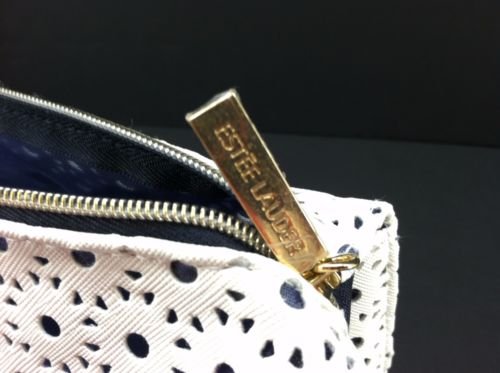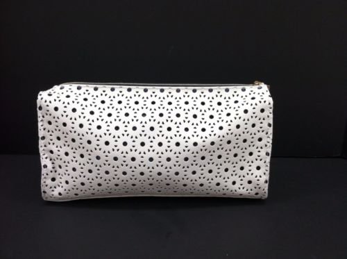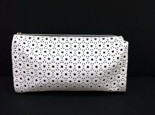 Estee White Laser Cut Design Bag Mesh Lining Zip Makeup Pouch