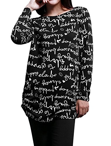 -. Title : Allegra K Lady Rundkragen Lange Ärmel Brief Muster Pullover Strick Hemd