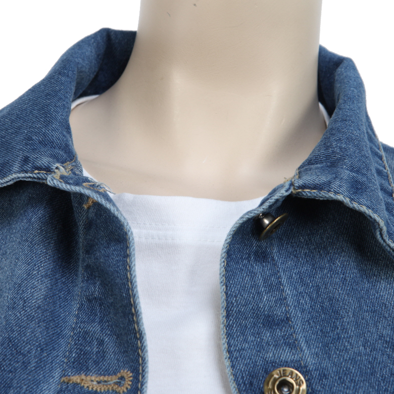 - 절개라인 으로 봉재 작업된 여성 데님자켓 이에요