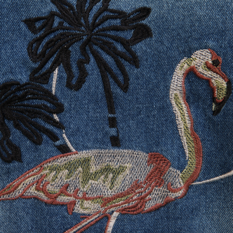 - 특히 뒷면에는 영문, 버드, 야자 컬러 자수가 보기만 해도