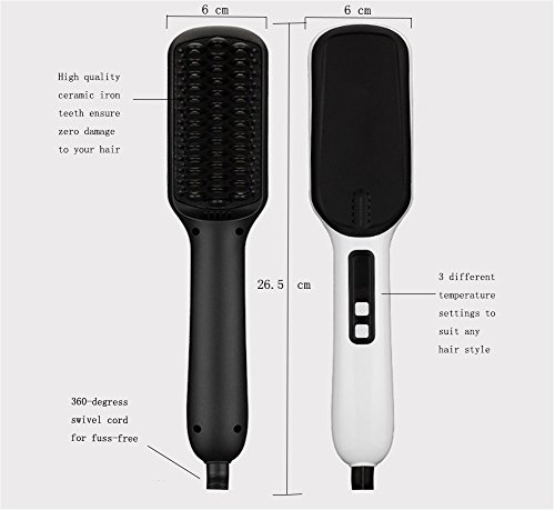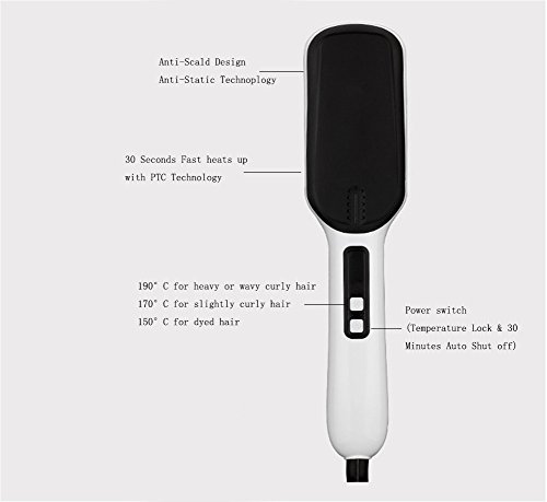 Instant Heat on Contact: This electric hair straightening brush works with 110 V-240 V and takes less than 30 seconds to get hot,thanks to expert-grade PTC ceramic heating components.