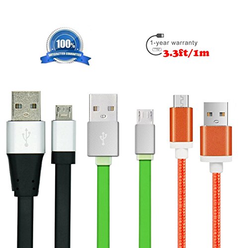 Android USB Cables Combo,Hankuke [3.3 ft/1m] Variation Pack Rapid Charging and Data Sync Micro USB 2.0 Short Cord of Shield Flat Cable, Nylon Braided Cable, Soft TPE Cable for Android Smartphones