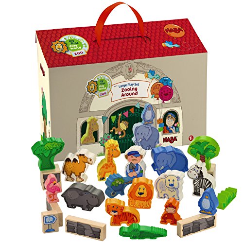-. Title : HABA Zooing Around Portable Wooden Zoo Play Set with 23 Wooden Pieces for Ages 18 Months and Up