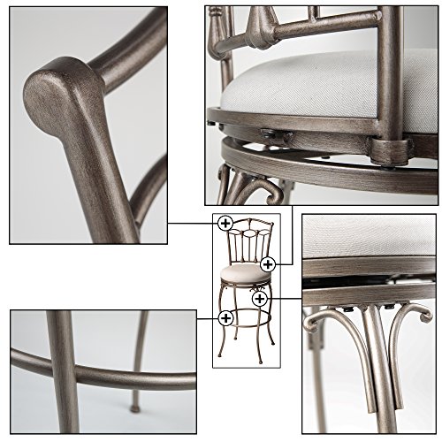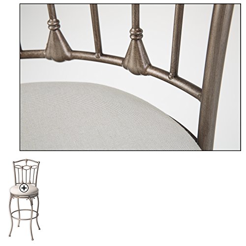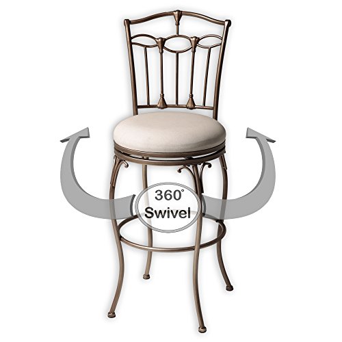 -. Brand : Fashion Bed Group -. Feature : Seat height: 30 in.; Dimensions: 17W x 21.5D x 45H in. / Seat width: 17 in. / Sturdy metal frame with swivel seat upholstered in linen / Brushed bronze finish / Timeless, unique, transitional style -. Label : Fashion Bed Group -. Manufacturer : Fashion Bed Group -. MPN : C1M070 -. PackageQuantity : 1 -. PartNumber : C1M070 -. ProductGroup : Furniture -. ProductTypeName : HOME_FURNITURE_AND_DECOR -. Publisher : Fashion Bed Group -. Studio : Fashion Bed Group -. Title : Fashion Bed Group Concord 30 in. Swivel Bar Stool - Brushed Bronze