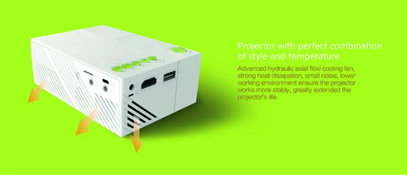 - Ventilation design, dissipates the heat produced after a long time working quickly, largely improves the stability and life time of the projector