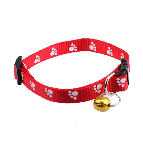 (Tonsee®)/Pet Supplies/Flea Tick Control/DIRECT FROM USA/Tonsee® Adjustable Nylon Footprints Collar Dog Puppy Pet Collars With Bells (Red)