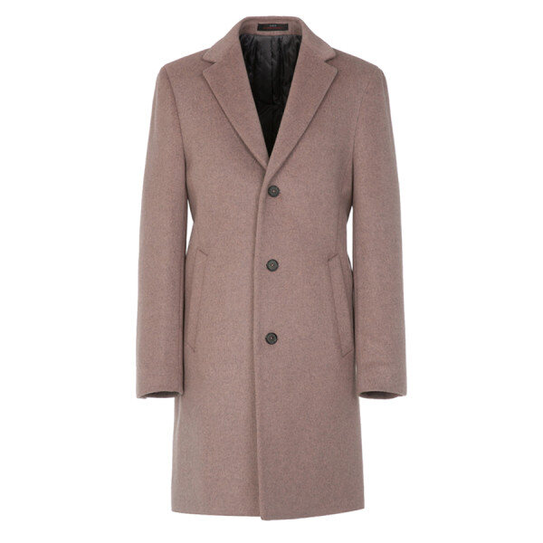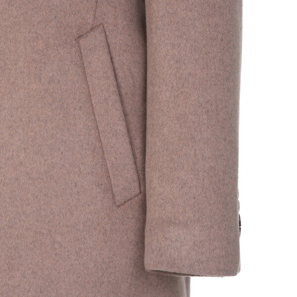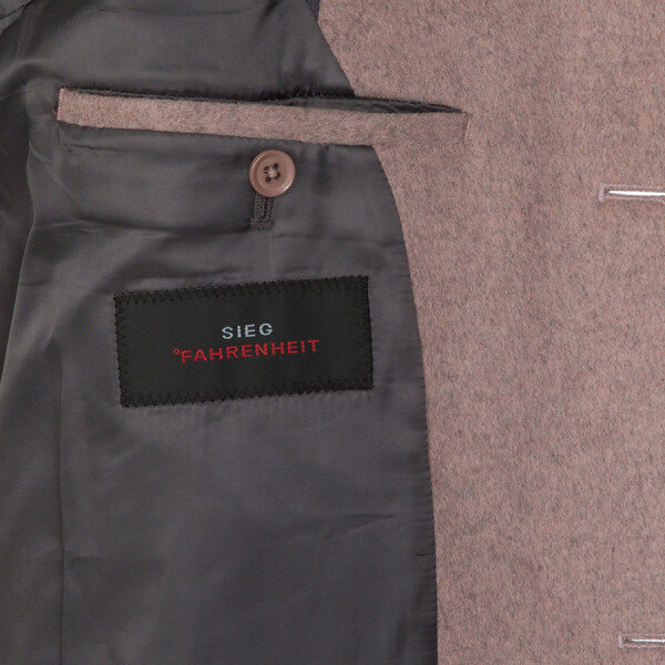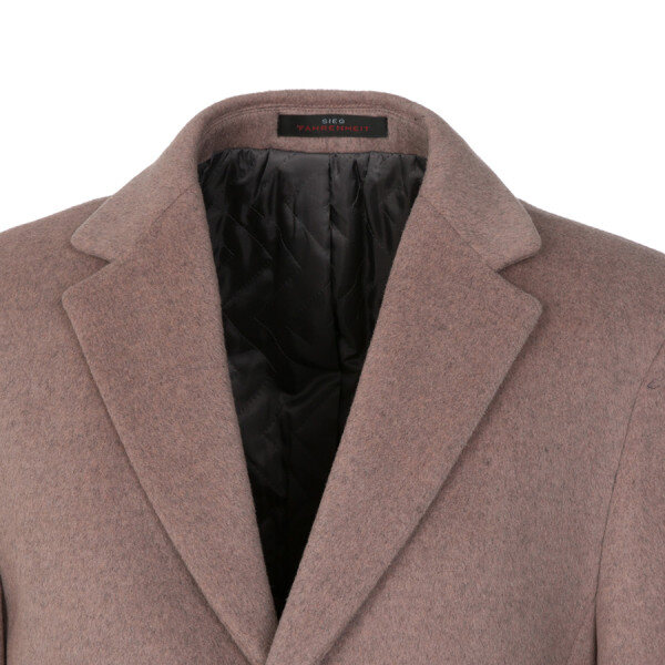 SIEG °FAHRENHEIT라이트 멜란지 블루 컬러의 기모 이중지 소재로 3-BT 테일러드 형태의 H-라인 실루엣의 롱코트.