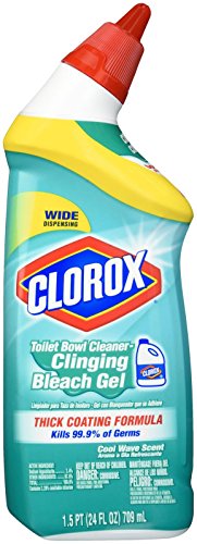 -. Feature : 24 fl. oz. bottle of Clorox Toilet Bowl Cleaner, Clinging Bleach Gel, Cool Wave scent / Non-abrasive, thick clinging gel coats the entire bowl and rim / Disinfecting toilet cleaner with bleach kills 99.9% of germs and eliminates odor-causing bacteria / Removes dirt and grime, dissolves tough stains and brightens / Wide dispensing nozzle for complete coverage