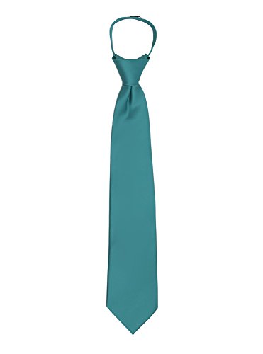Binding : Apparel Product Description This is a solid color boy's sized pretied zipper tie with a medium satin microfiber finish. The tie measures 2.5" wide and 14" long. The tie is tied already and features an adjustable sliding zipper. To open, hold the knot firmly in one hand and pull the loop open. Slip it on, and hold the tail end as you slide the knot up into place. Takes seconds to put on and makes a perfect knot every time! Well made with a soft but durable lining to give it a nice body and weight. Boy's size ties really depend on the height of the child. Generally, this tie will fit ages 5-8. For the best fit, measure from the boy's neck to the belt line. This zipper tie is 14" long. Check out our other options for boy's size ties available in a self tie or other pretied zipper sizes. This item is part of the trademarked Jacob Alexander collection of men's and boy's neckwear and accessories.