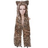 -. Title : Leopard Hood Plush Animal Hat with Long Black Mittens