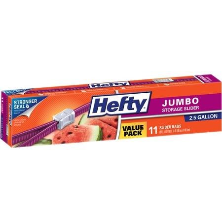 -. Title : Hefty Slider 2.5 Gallon Jumbo Storage Bags, 11 Count (Pack of 2) Total 22 Bags