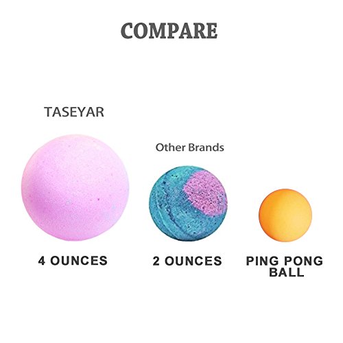NATURAL INGREDIENTS: TASEYAR Bath Fizzer Balls are entirely natural and contains no artificial flavors or colors, moisturizing dry skin and releasing stress in a whole natural way.