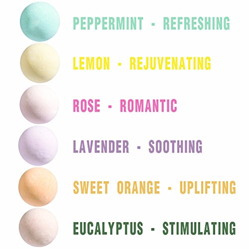 Set of 6 bath bombs gift set that's hard to resist6 giant and color candies smell like sweet orange, rose, lavender, lemon, peppermint and eucalyptus. Each of the balls is individually wrapped like candy, being a perfect gift.