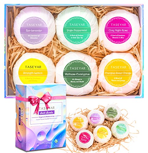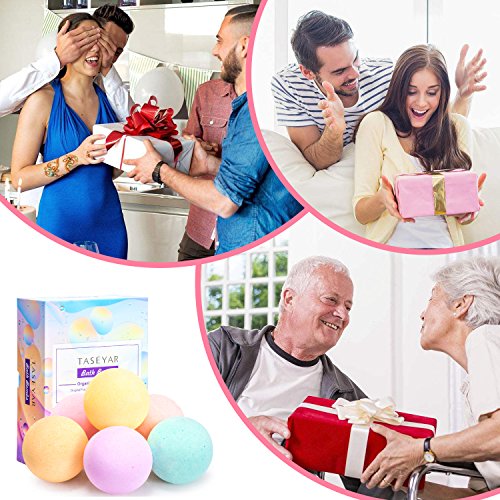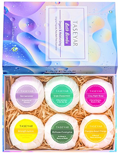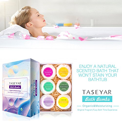 WONDERFUL GIFT SET: TASEYAR Bath Bomb Gift Set is designed and produced with quality, including 6 unique fizzy bath bombs (Sweet Orange, Rose, Lavender, Lemon, Peppermint and Eucalyptus). Each ball is individually packed with paper,Perfect for Mother's Day gifts, birthday gift, gifts for her, spa/bath gifts, gift for women/mom, Birthday gift for friends, Father's Day gift for dad, Anniversary Gift for wife or husband, etc.