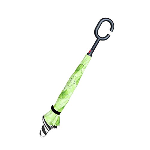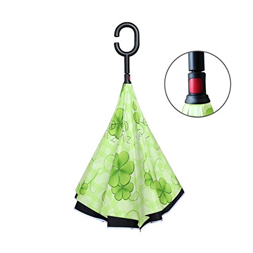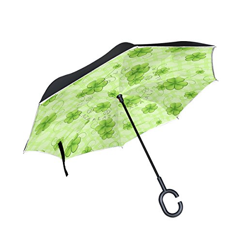 (ALAZA)/Accessories/Umbrellas/DIRECT FROM USA/ALAZA St Patrick's Day Shamrock Clover Inverted Umbrella with C-Shaped Handle, Double Layer Wat...