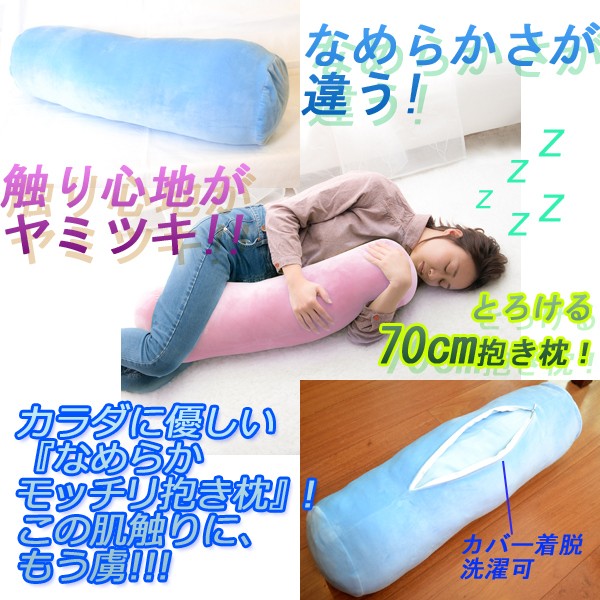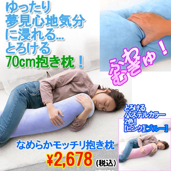 ゆったり夢見心地気分に浸れる...とろける70cm抱き枕!遂に、ロングに抱ける!この上ない”モッチリ抱き枕”超バリュー・プライスで登場!!なめらかさが違う!触り心地がヤミツキ!!70cmロングサイズだから、カラダを、脚を巻き付けて極楽快眠zzz一度、体感したらクセになる、コレが話題の”なめらかモッチリ抱き枕”!安心感・優しい肌触り・柔らか感触...もう、手離せないこのモチモチ感!!●ベッドで巻き付いて!ソファーでまったり!ゴロ寝クッションの友として≪癒しの極上抱き枕≫!!!カラダに優しい『なめらかモッチリ抱き枕』!この肌触りに、もう虜!!!とろけるパステルカラー2色!【ピンク】【ブルー】しかも、このロープライスには驚き!!お買い得!!!通常価格3,218円→特別価格2,678円!■サイズ:約(直径)20x(長)70cm