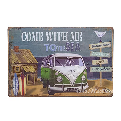 66Retro Come with me to the Sea, Volkswagen Van, Vintage Retro Metal Tin Sign, Wall Decorative Sign, 20cm x 30cm