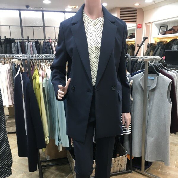 정장 벌 디자인의 자켓입니다 기본 정장보단 좀더 박시한 디자인으로 세련되게 입기 좋아요