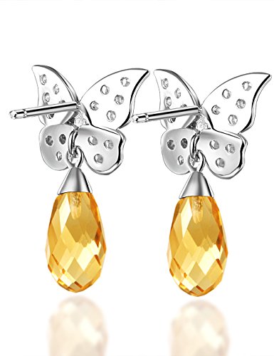 -. Title : Elda & Co. Butterfly Dangle Earrings - Premium Quality 18k Gold Plated 925 Sterling Silver, Teardrop Design, Genuine Gemstone - Beautiful Butterfly Shape - Unique Fashion Jewelry Sets For Women