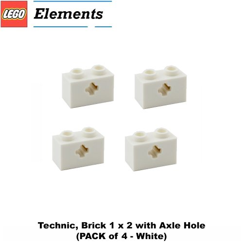-. Title : L.E.G.O Parts: Technic, Brick 1 x 2 with Axle Hole (PACK of 4 - White)