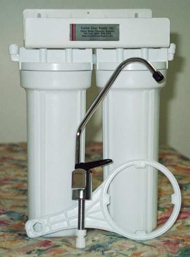 This double under sink water filter features our KDF/GAC cartridge (Granulated Activated Carbon) cartridge (12,000 gallon rating), In addition to the KDF/GAC this unit has an Activated Alumina cartridge to effectively remove Fluoride from your drinking water. Includes standard faucet chrome with black plastic tip and handle, 8.75" tall and has a swivel spout with a reach of 5.5", "EZ valve connector" high pressure polyethylene tubing, mounting bracket, and housing wrench. Quick-connect fittings make installation a snap! This undercounter filter is placed out of the way, under the sink. It connects to the cold water line with an "EZ valve connector" and dispenses water through an attractive long reach faucet. Quick-connect fittings make for fast, easy installation. A 1/2" hole is all that is needed for the faucet stud (all series), but a cover plate is included to accommodate larger pre-drilled holes. 12" tall, 10" wide, 5" deep. 3 year prorated warranty on cartridge, 5 year on components. This dual setup unit is the best for Fluoride Removal which is removed with an Activated Alumina Filter our KDF/GAC cartridge will also remove any activated alumina that may be in your water after going through the activated alumina filter for ultra clean water for your family.