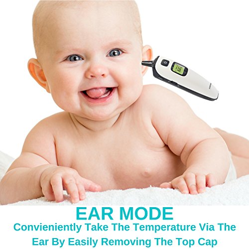 - PRACTICAL DESIGN WITH FOREHEAD, EAR & OBJECT MODES: Newly redesigned model for 2018 with 3 modes. Easily switch between the forehead, ear, & object modes with the press of a button. This digital infrared thermometer is not only perfect for your baby, toddler and kids, but teens & adults too. And with the new object mode, you can take the temperature of your grill, while cooking in the kitchen, and just about anything else with the press of a button.