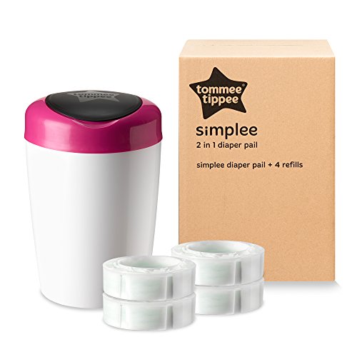 Tommee Tippee Simplee Diaper Pail Starter Set with 4 Refills, Pink