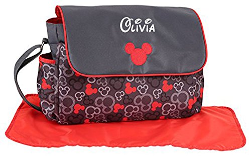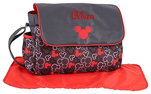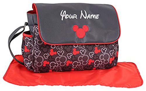 Studio : Disney Publisher : Disney Binding : Baby Product Product Description Personalize this Mickey Mouse Grey and Red Icon Diaper Bag with the name of your choice! Diaper Bag Gift Set Includes: Diaper Bag and Changing Pad. Includes interior and exterior compartments for organization and storage. Measures approximately 17 inches wide and 12 inches tall. Its multi-functional and stylish design makes this diaper bag practical for everyday use. Hangs neatly on a stroller or worn over the shoulder. Note: Items that are customized specifically for the customer (such as monograms, names, embroidery, etc.) are not eligible for a return. Please refer to the "Customized Products" section of the Amazon Return Policy for more info and double-check all spelling prior to submitting your order. 0