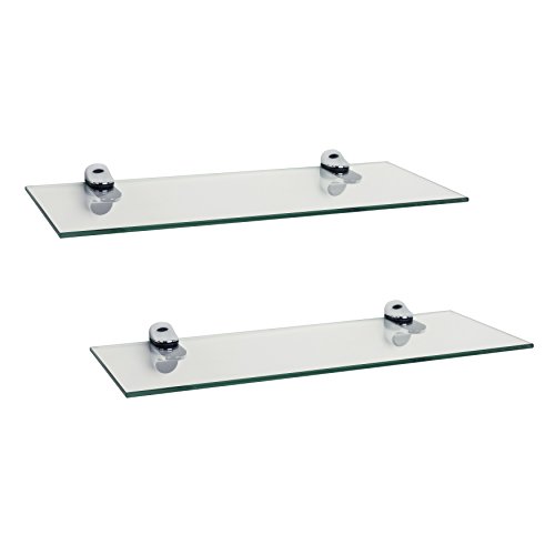 - Title : Set of 2 Clear Glass Floating Shelves with Chrome Brackets
