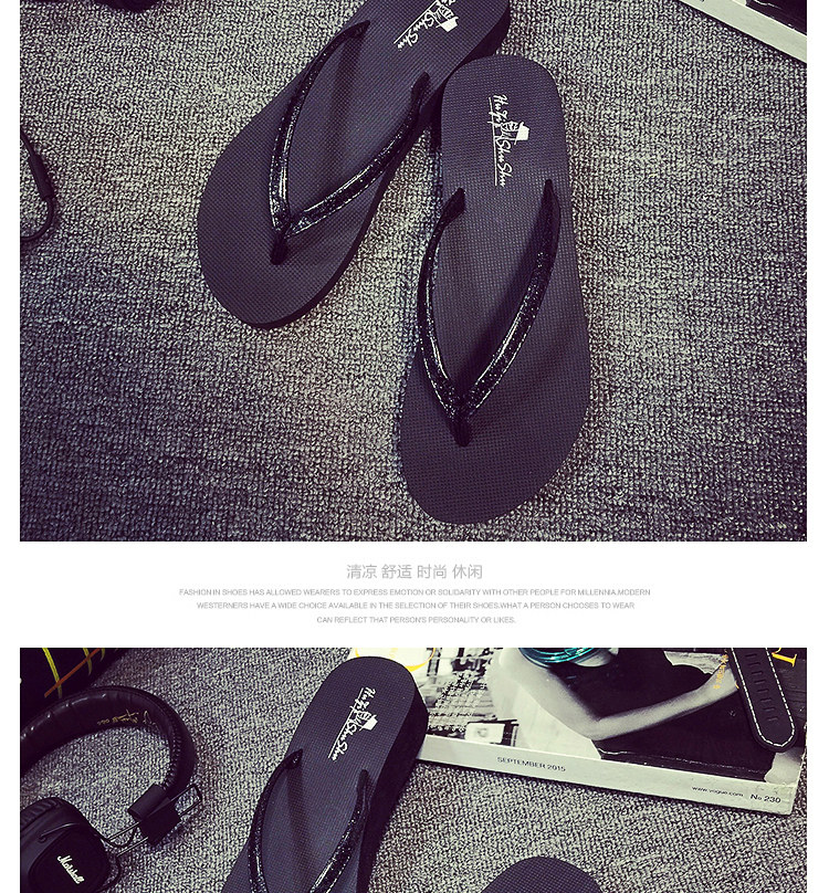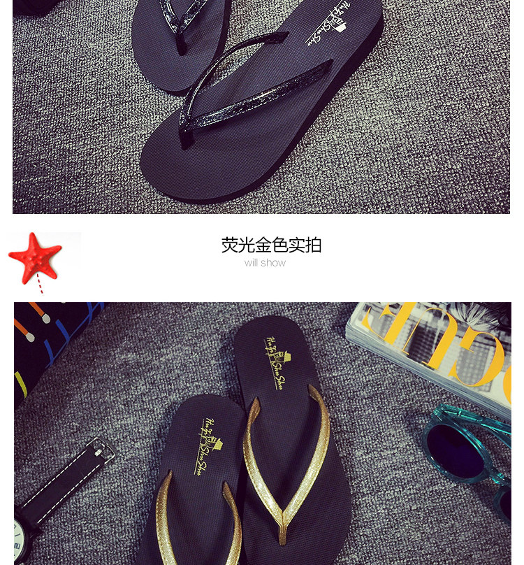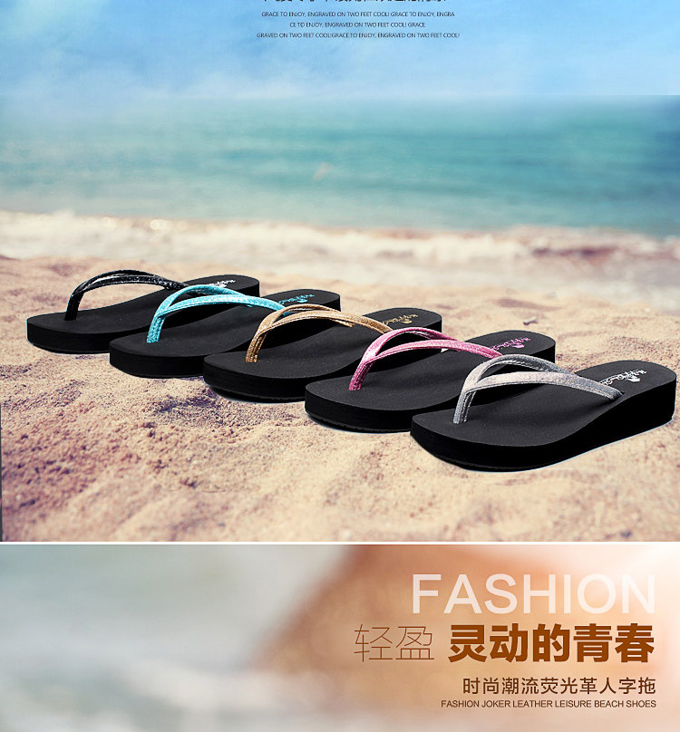 人字拖女夏季防滑坡跟夹脚沙滩鞋韩版厚底拖鞋简约学生度假凉拖鞋