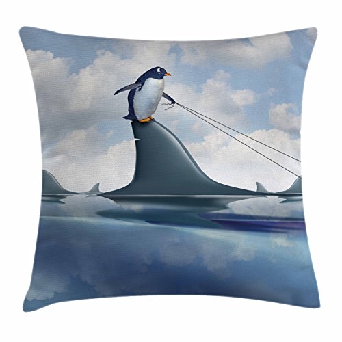 Shark Throw Pillow Cushion Cover by Ambesonne, Fear Management Leadership Concept with A Pengui...