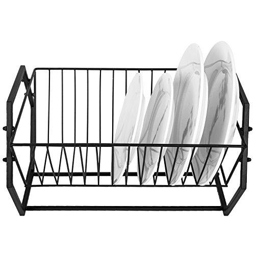Countertop Black Metal Dish Drying Rack, Hexagonal-Design 14 Slot Kitchen Plates Storage Organizer