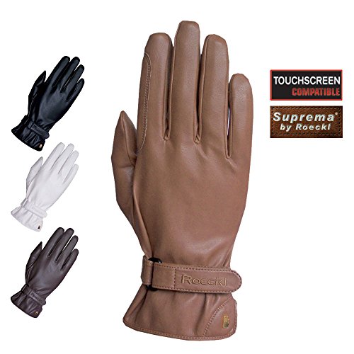 Studio : Roeckl Publisher : Roeckl Binding : Misc. Product Description Suprema by Roeckl is the particularly exclusive artificial leather that offers all the comfort of modern functional textiles and yet cannot be destinguished from high-quality nappa leather. The Suprema riding gloves MONACO has a decorative gold plated ROECKL-Logo-Hand. The gloves are very grippy, with velcro fastening. They are machine-washable, very elastic, extremely breathable and very soft. Touchscreen compatible. Available colors: black, white, hazelnut, mocca. Text by CALEVO. 0
