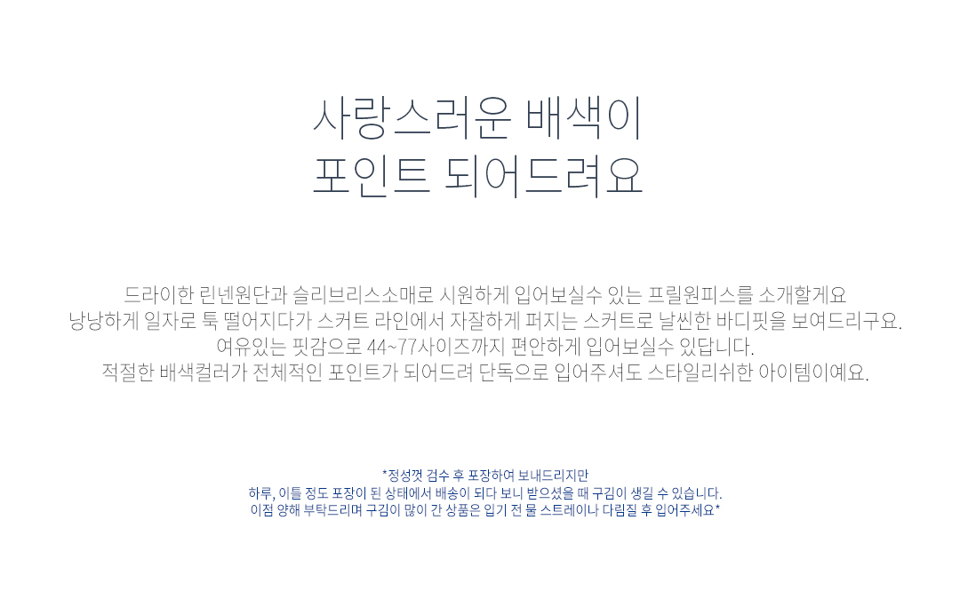 .같은 사이즈라도 체형에 따라 핏감이 조금씩 다를 수 있습니다.