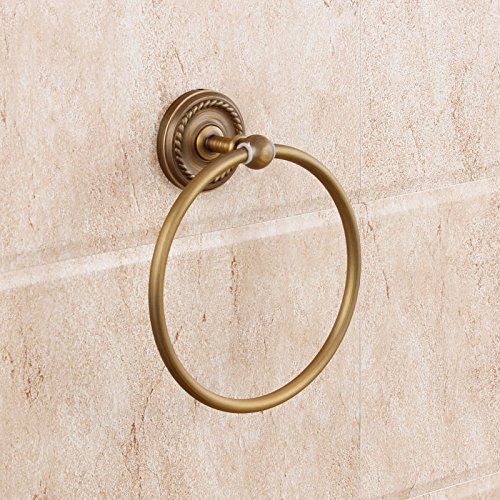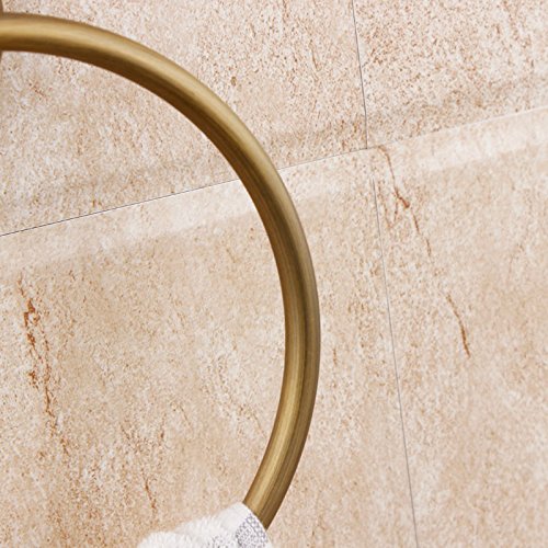 Beelee Engraving Bath Hardware Accessory Brass Material Towel Ring Holder Bathroom Wall Mounted Concealed Screws Towel Hanger Shower Accessories Holder Towel Circle Holder (Antique Brass)
